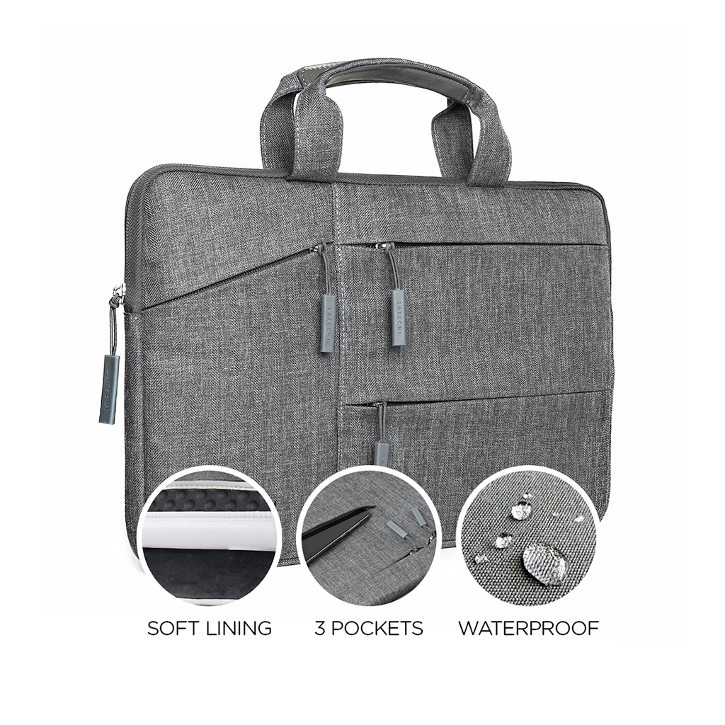 With durable, water-resistant nylon fabric and fully padded interior, your laptop is protected and insulated from sudden falls, scratches, dirt, and dust. Never compromise between style and functionality with the Satechi water-resistant laptop sleeve. With durable, water-resistant nylon fabric and fully padded interior, your laptop is protected and insulated from sudden falls, scratches, dirt, and dust. These clean, yet fully functional designs offer an elegant aesthetic that complements your laptop, equipped with convenient side pockets to store and organize your extra accessories.