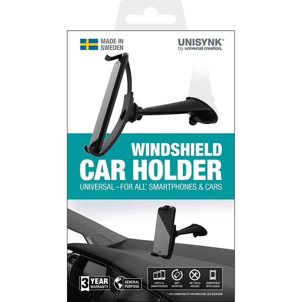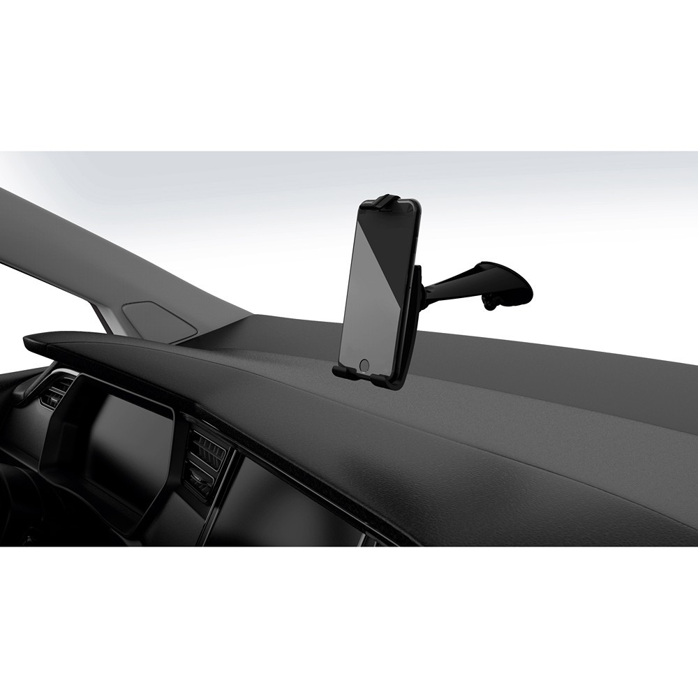 Swedish-made universal smartphone holder for mounting on the car dashboard. Fits all smartphones 104-168 mm, including smaller tablets in horizontal position. Lockable ball for smooth adjustment and optimal positioning. Made of glass fiber reinforced plastic and easy to maneuver with just one hand. Attaches stably and easily thanks to the airtight and optimized PVC suction cup.