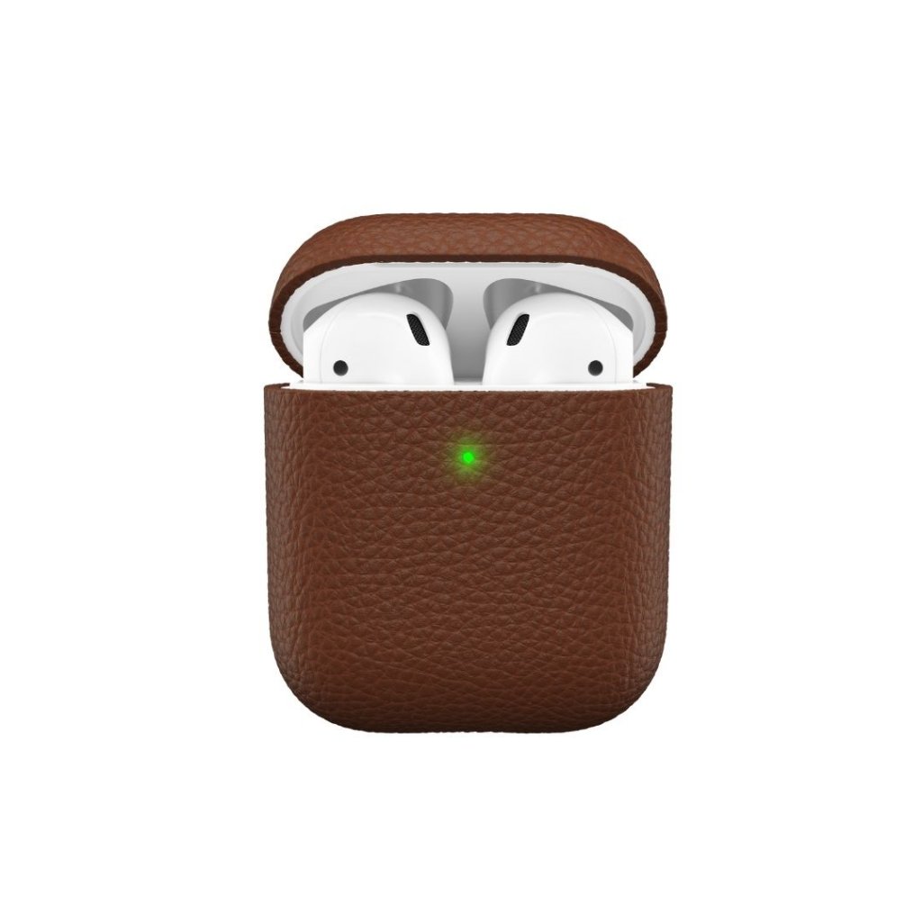KeyBudz AirPods (1/2) Case PodSkinz Genuine Leather Brown is a brown protective case for Apple AirPods 1/2.