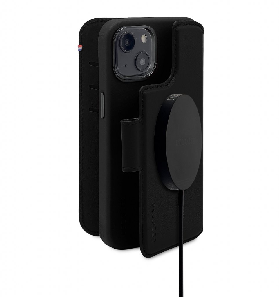 Decoded iPhone 14 Plus Case Leather Detachable Wallet Black is a black mobile case for the iPhone 14 Plus.