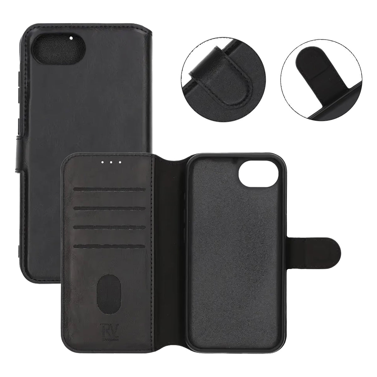 Protect your iPhone 16e/17e with this elegant and functional wallet case from Rvelon. The black case combines style and security with practical storage, making it an excellent choice for both everyday use and professional contexts. The case is designed to provide a complete solution for users who want both protection and convenience in one product.