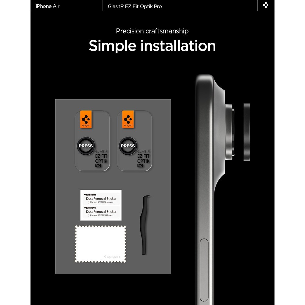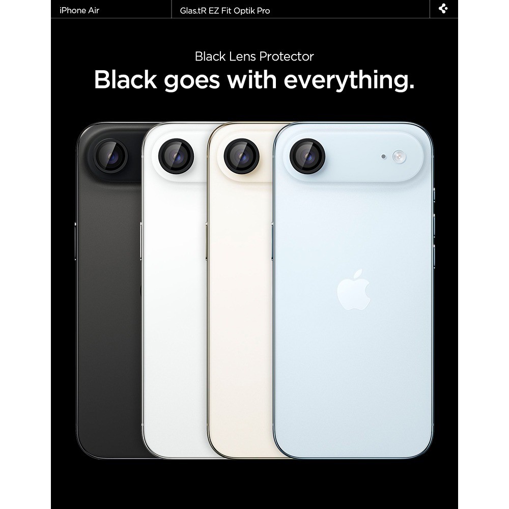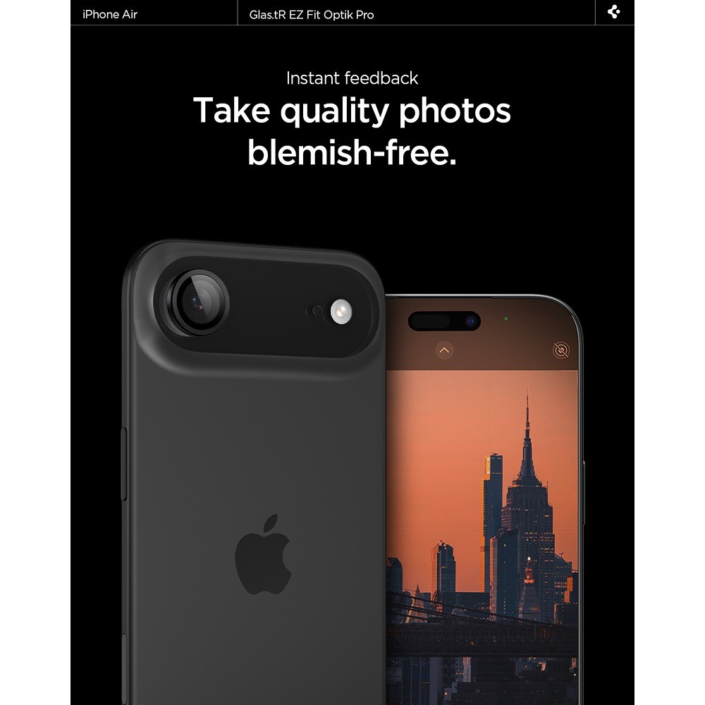 Spigen iPhone Air camera protector GLAS.tR EZ Fit Optik Pro 2-pack Black is a black and transparent camera lens protector for the Apple iPhone Air.
