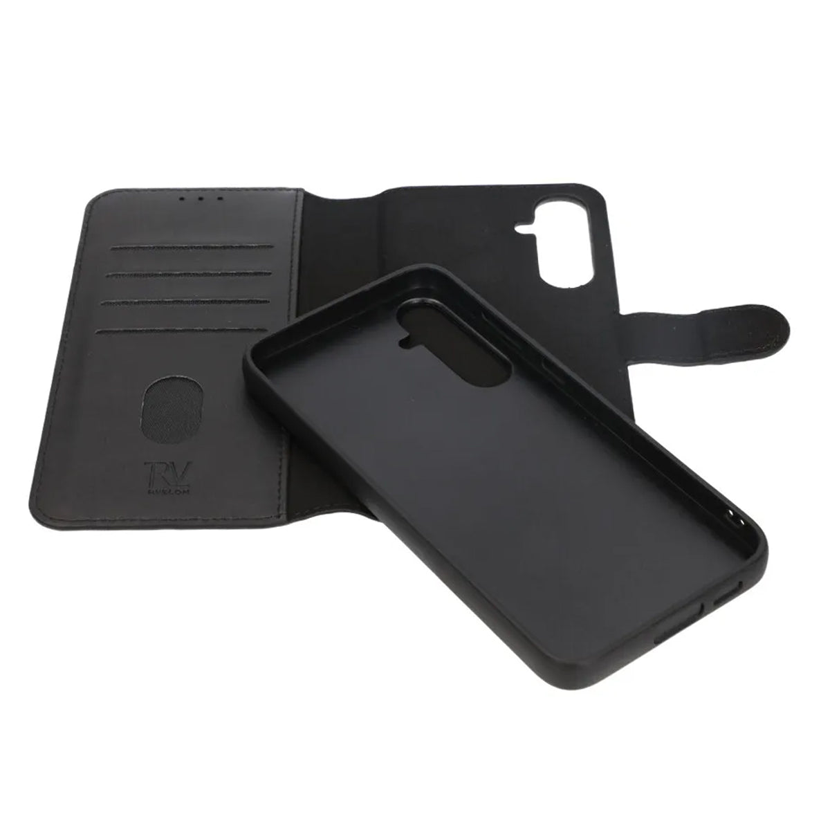 Protect your Samsung Galaxy A25 with this elegant and functional wallet case from Rvelon. The case combines sleek design with practical features, making it perfect for both everyday use and work. With its black finish and magnetic closure, it offers secure protection and easy access to your device.