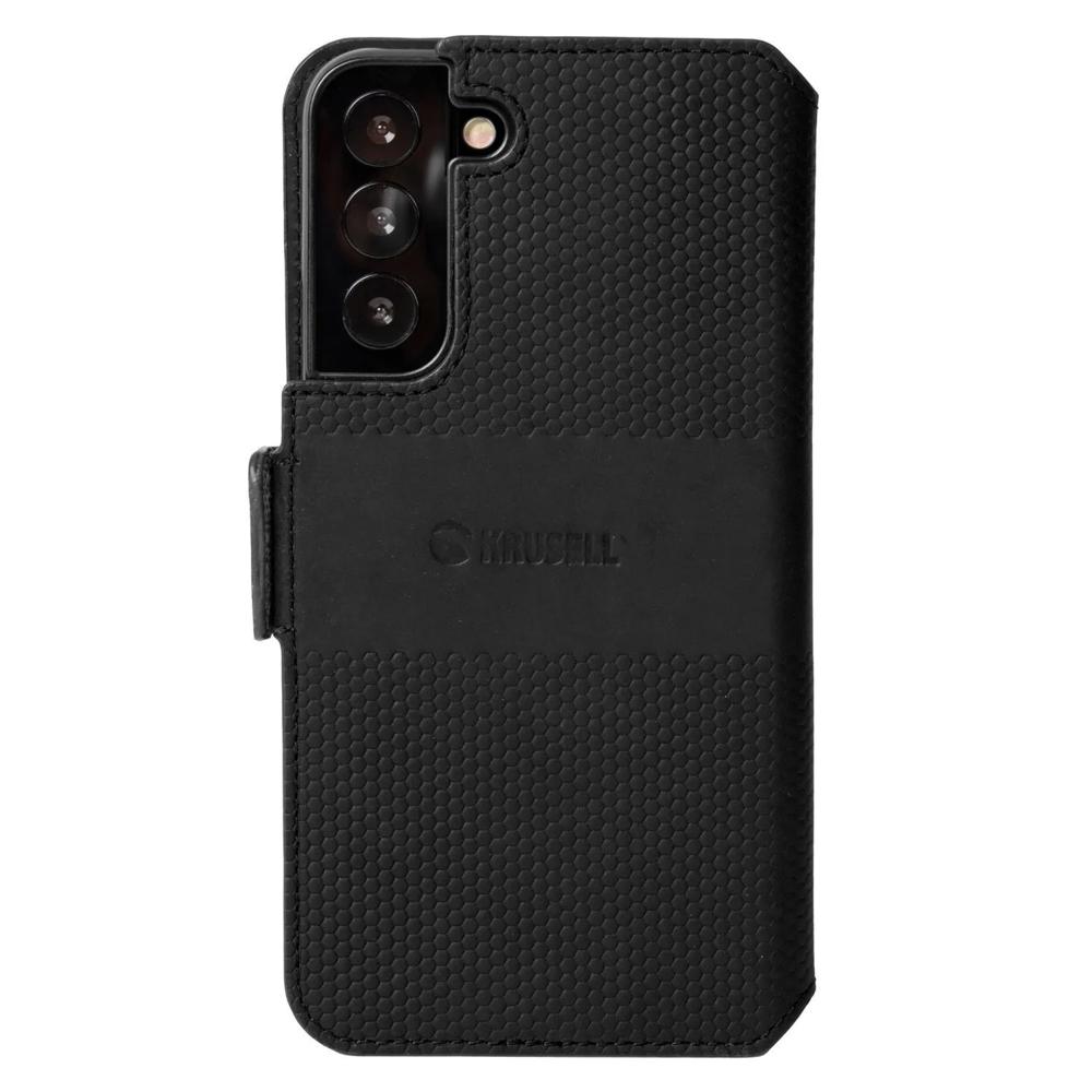 Krusell Samsung Galaxy S22 Plus Case Leather PhoneWallet Black is a black phone case for the Samsung Galaxy S22 Plus.