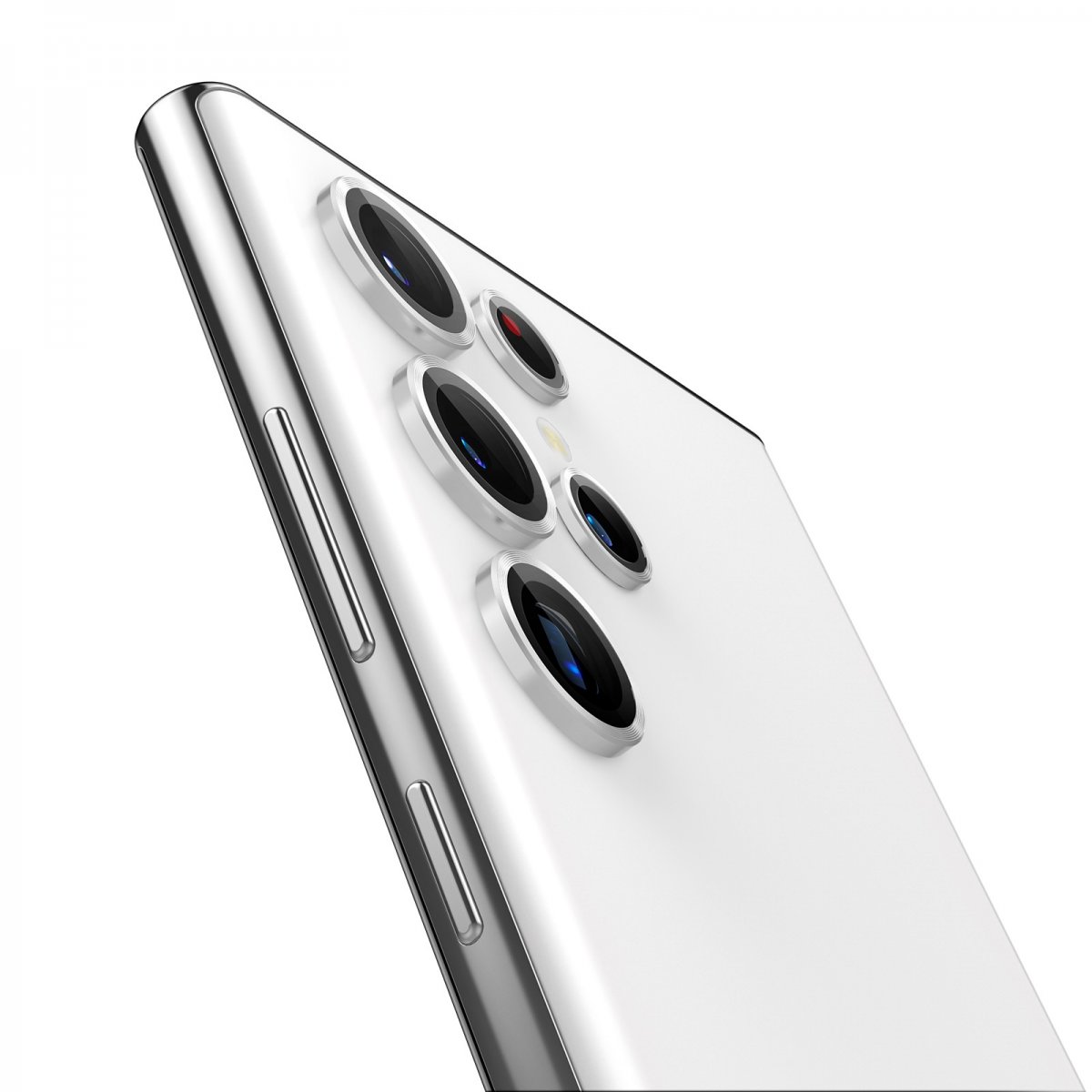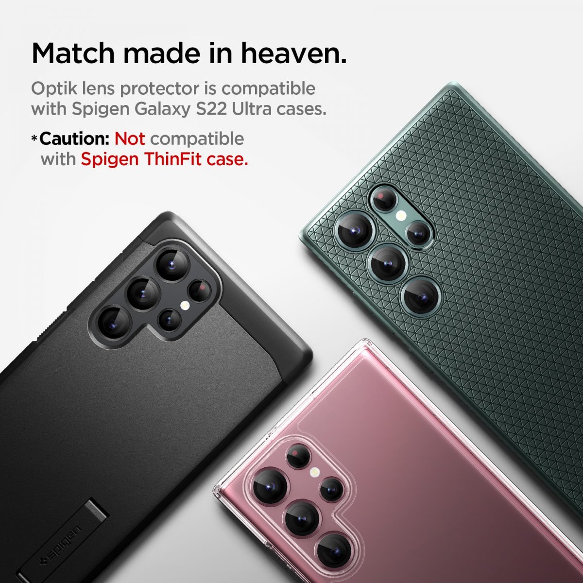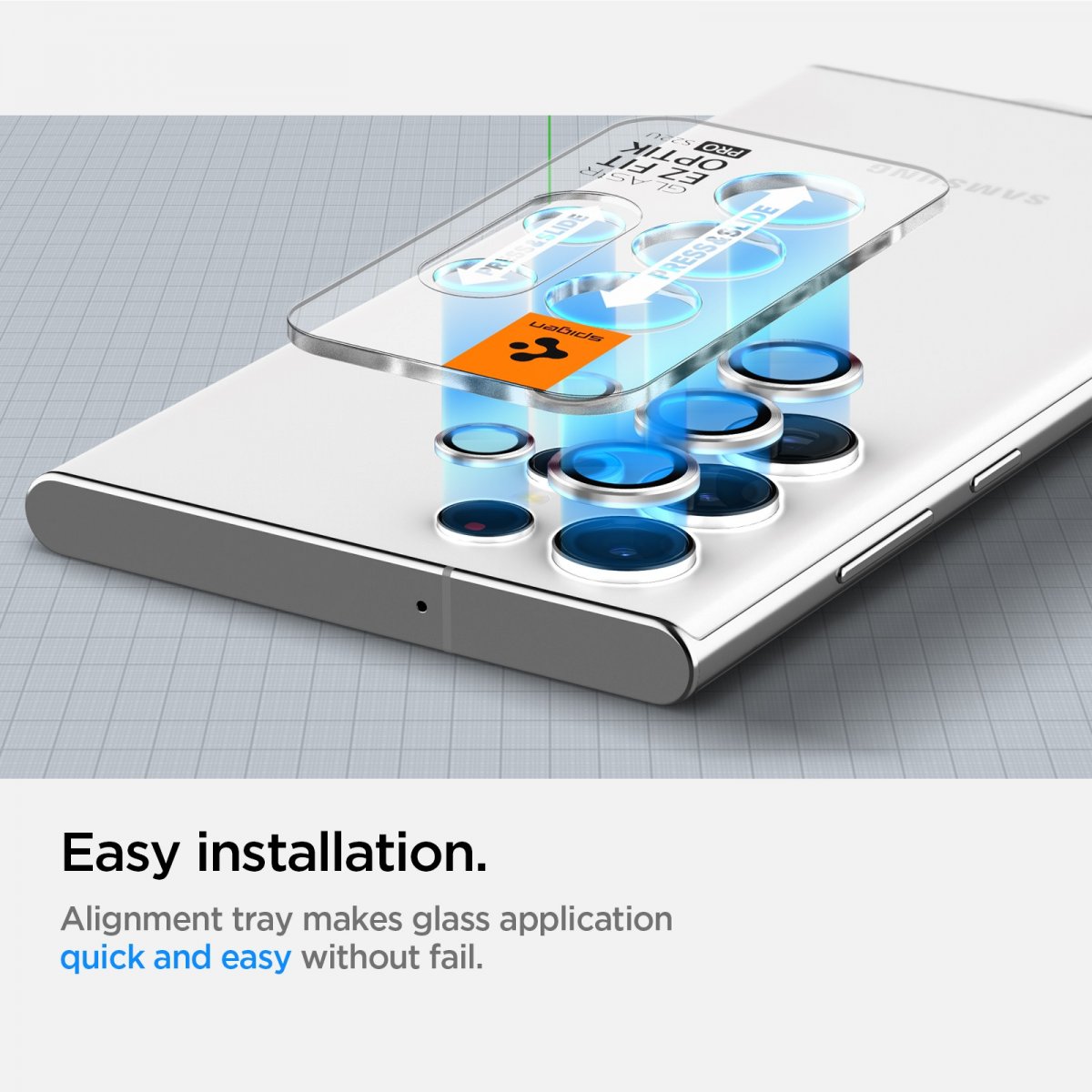 Spigen Samsung Galaxy S22 Ultra camera protector GLAS.tR EZ Fit Optik Pro 2-pack Phantom White is a white camera protector for the Samsung Galaxy S22 Ultra.