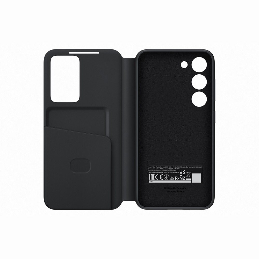 * Plastdelarna i Samsung Smart View Wallet-skalet består till minst 17% av återvunnet material och utsidan av skalet består av minst 21% så kallade biomaterial, alltså material som tillverkats av biologiskt framställda råvaror, som till exempel stärkelse. UL-certifieringen innebär att test- och säkerhetsföretaget UL har validerat att materialet består helt eller delvis av bioplaster.