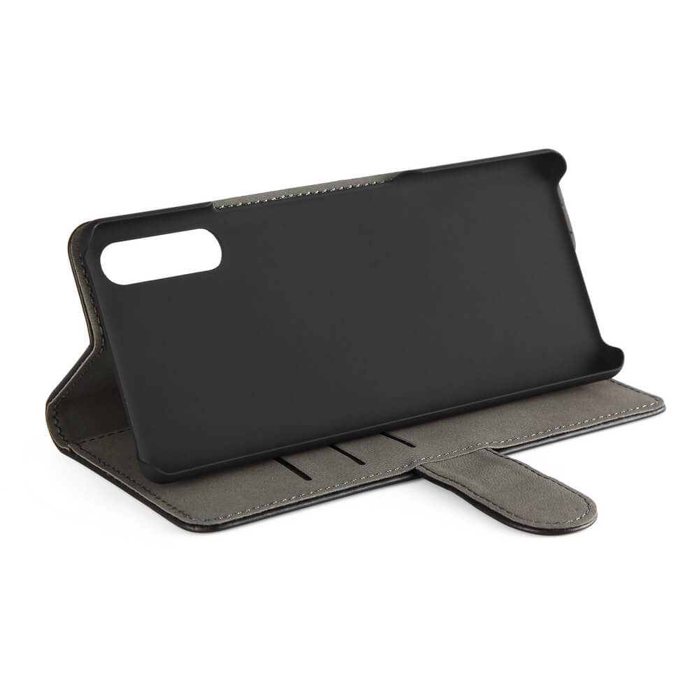A smart and practical combination of a protective cover and wallet for your smartphone. The wallet case is made of PU leather. Your smartphone is protected and secured in an integrated shell, giving you full access to all ports and functions. Integrated stand function, perfect for watching movies on trains or flights. Closes with a magnetic lock.