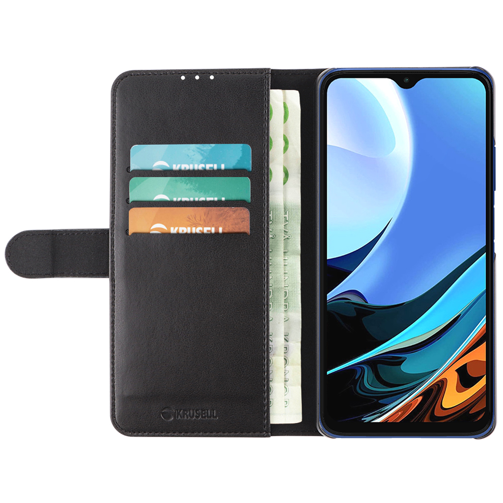 Krusell Xiaomi Redmi 9T Case PhoneWallet Black is a black phone case for the Xiaomi Redmi 9T.