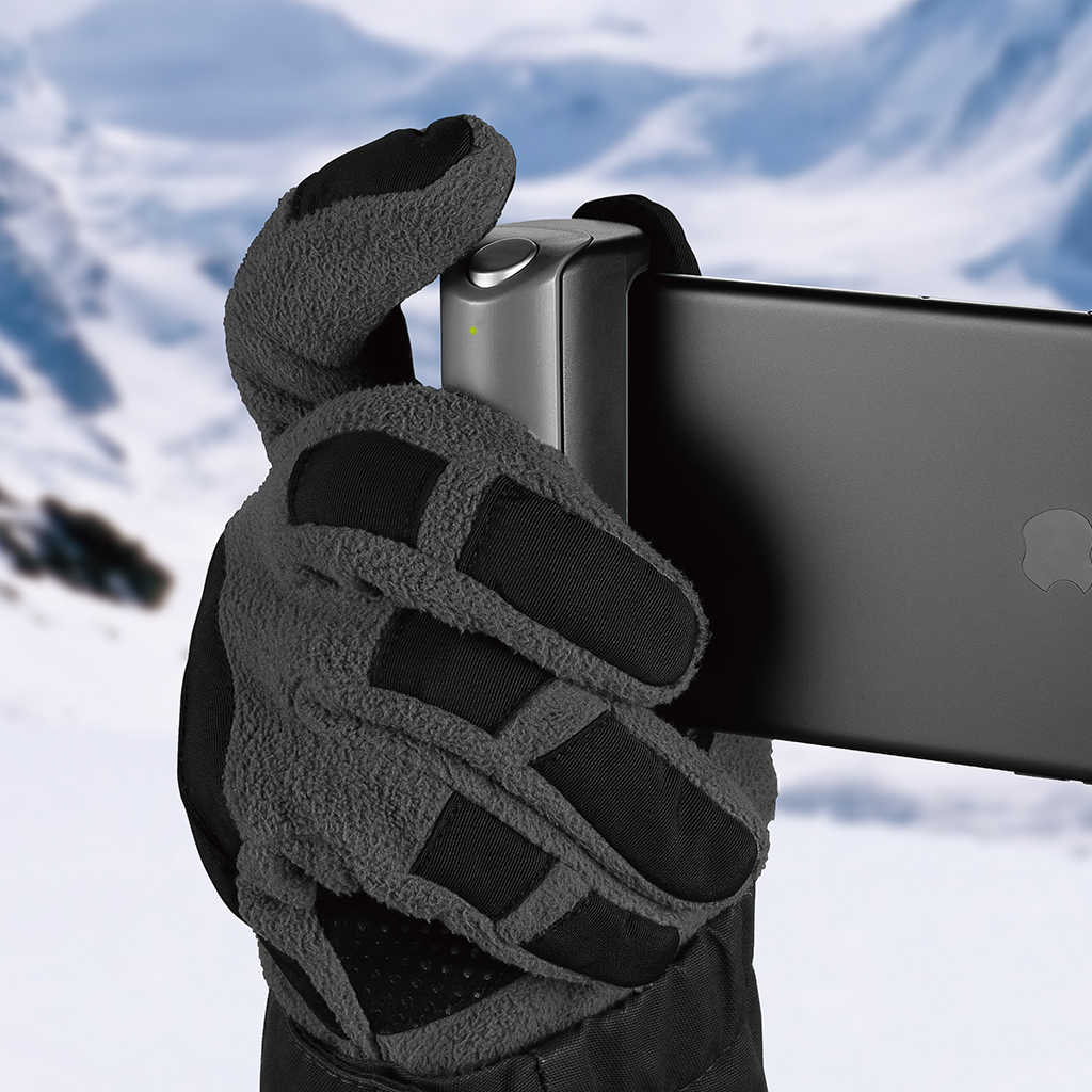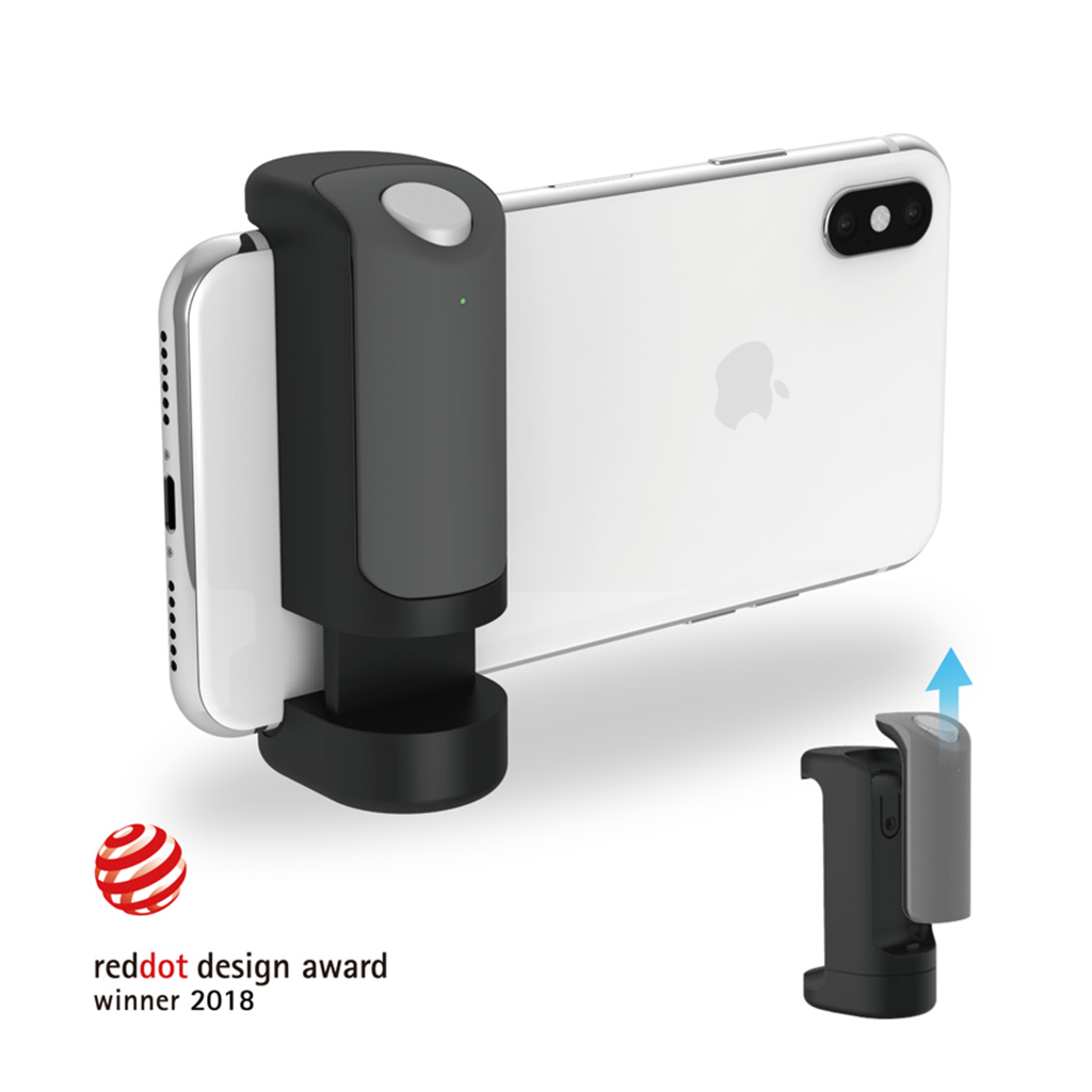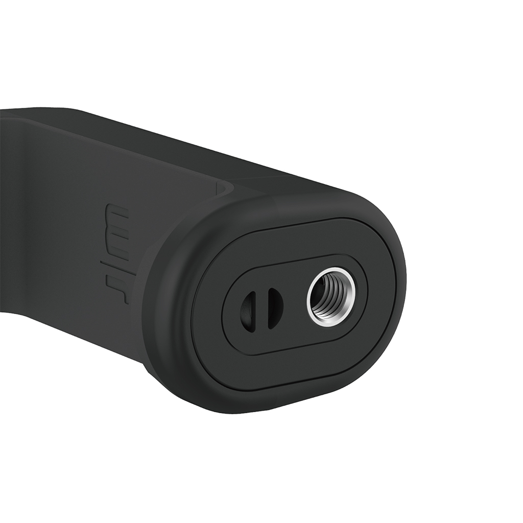 Just Mobile ShutterGrip™ transforms your smartphone into a powerful camera tool in no time. Thanks to a spring-loaded clamp it attaches securely to almost any smartphone — whether you use a case or not. The result is a steady, ergonomic handle combined with a wireless shutter button, eliminating shaky photos and awkward handling.