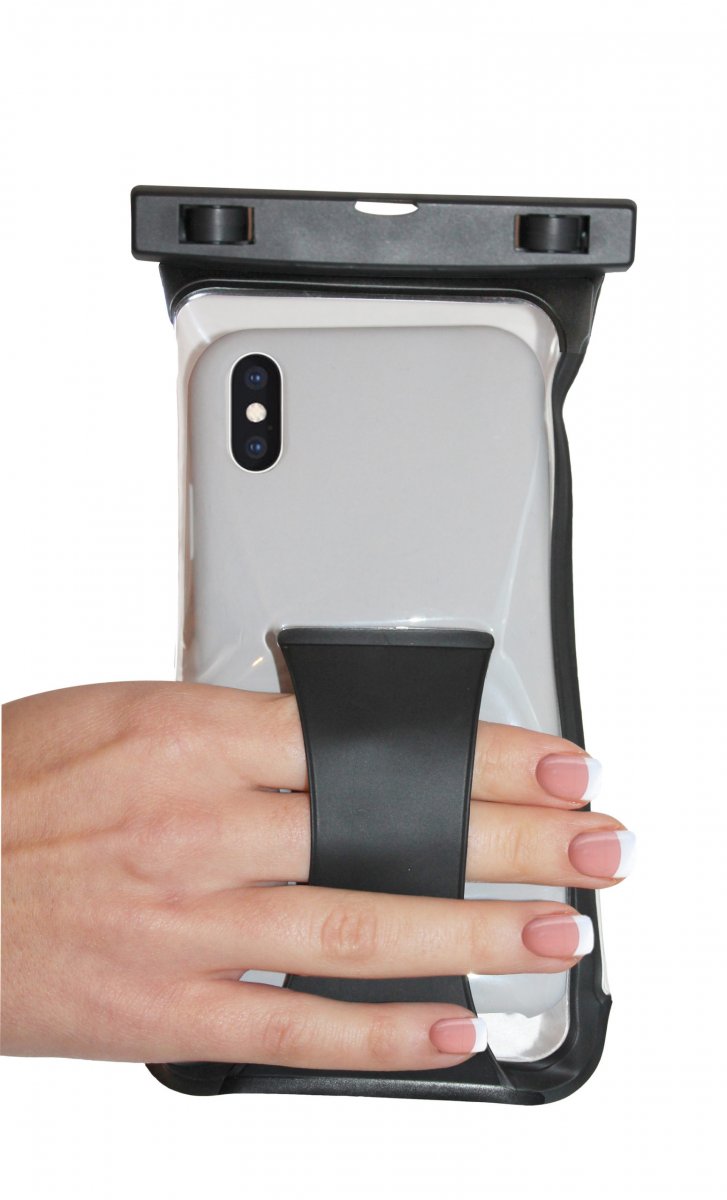 This waterproof smartphone case impresses with its excellent water resistance. The material is soft for the best possible touch interaction with the phone inside the case. It allows touchscreen operation and takes pictures and videos. With a strap of 110 cm, it is the perfect companion for the next beach day. The lanyard has good nylon quality, and the case has a handle for easier handling of the phone when it is inside the case.